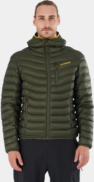 Fundango férfi A steppelt Fundango Rauris Down Jacket férfi pehelykabát 90/10 pehely-, és toll töltete a szellőzőképesség csorbítása nélkül tart melegen a hidegebb időjárási viszonyok között is. A legjobb hőtartást még napjainkban is a magas minőségű természetes pehely adja, másik kiemelkedő tulajdonsága pedig az összenyomhatósága, melynek köszönhetően a kabát kis helyen is elfér bőröndödben. A vízlepergető kezelés megakadályozza, hogy a vízcseppek megüljenek az anyag felületén, a víz apró gyöngyök formájában összegyűlik, majd lepereg a kabátról, így azt csapadékos időjárási körülmények között is viselheted. Az elasztikus kapucni szegéllyel ellátott fix kapucni kívül rekeszti a hideg szelet, a cipzáras főnyílás segítségével pedig könnyedén bele tudsz bújni a kabátba, valamint szabályozhatod szervezeted hőleadását. Elasztikus mandzsettái pontosan illeszkednek csuklódra, a szabad mozgás gátlása nélkül tartva melegen karjaid, illetve megakadályozva az ujjak felgyűrődését. Elülső cipzáras zsebeiben, és cipzáras mellzsebében kényelmesen elférnek legfontosabb holmiaid. Rövid állású Ergonomic Fit szabása gondoskodik maximális mozgásszabadságodról, és a réteges öltözködést is lehetővé teszi.