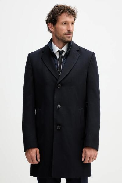 HUGO BOSS gyapjú kabát sötétkék, 50551117 - sötétkék 50