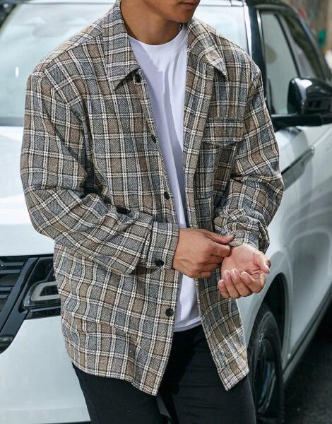 Shein Férfi Kabát Barna Kockás 4XL 4XL